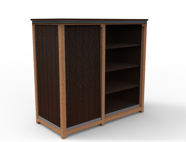 A double busser unit suitable for institutional dining halls, model FSB5T consists of a storage cabinet and 4 shelves for 7” busser tubs.