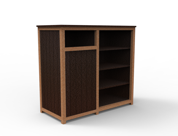 This busser station includes a waste/recycle receptacle with 28-gallon capacity and room for 4 7-inch busser tubs along with your favorite routed pattern design. Add a condiment station to create an efficient modular unit.