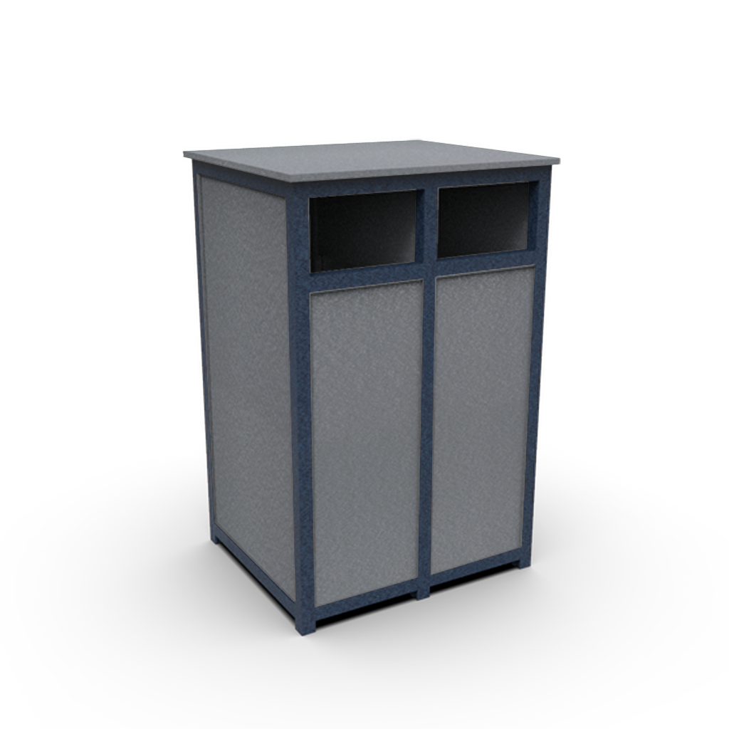 Double stream recycling receptacle gives you double the results without doubling your workload. Great for busy areas where waste and recyclables can pile up in a hurry. Avoid the unsightly mess and chaos for your staff with this efficient model that keeps waste under wraps. Neutral colors blend seamlessly with other outdoor furnishings, including our own planters, signs and benches.