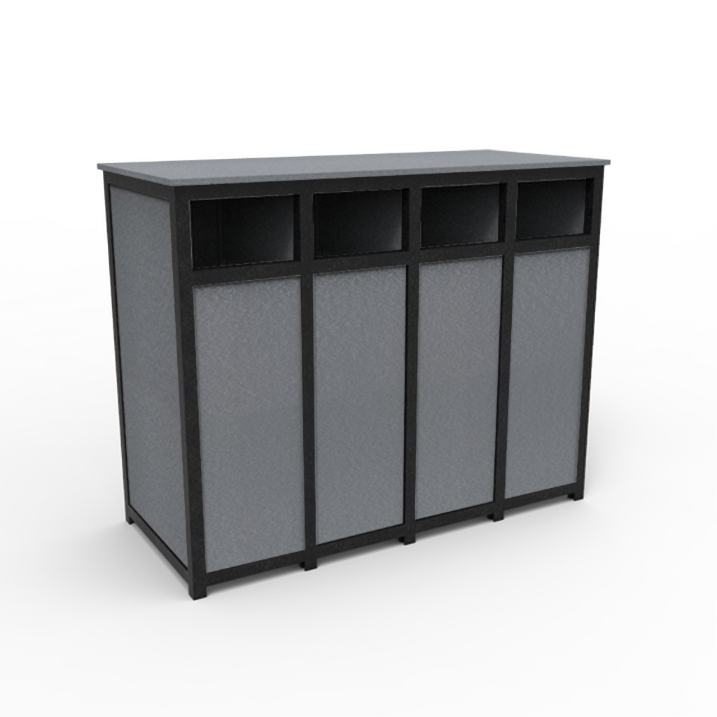 Large recycling receptacles are configured to include the specific number of waste and recycling receptacles you need. Add restrictive openings, descriptive labels and graphics to customize each recycling station.
