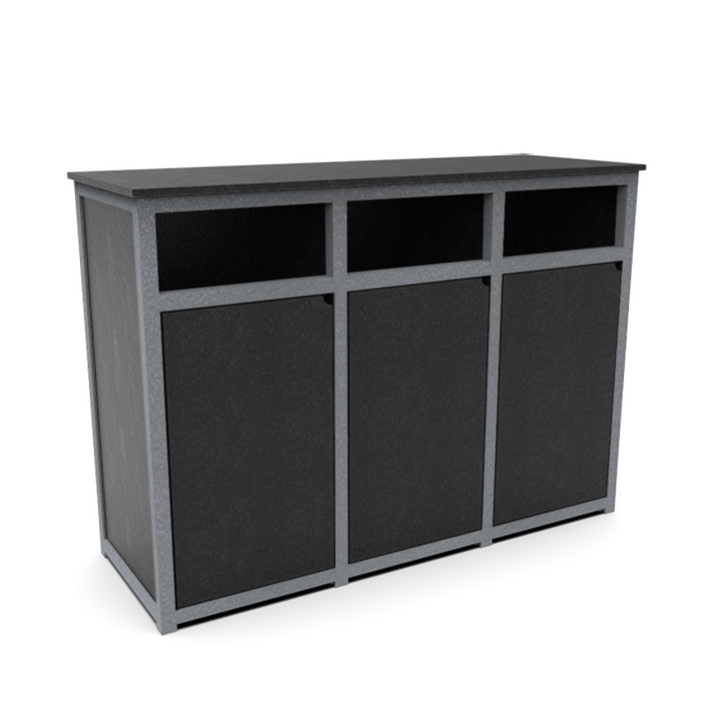 Don’t forget to coordinate your triple waste receptacle with other R3 products from our Classic Series, including podiums, planters, signs and benches. All of our furnishings are made to order and customizable upon request.