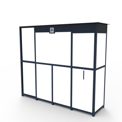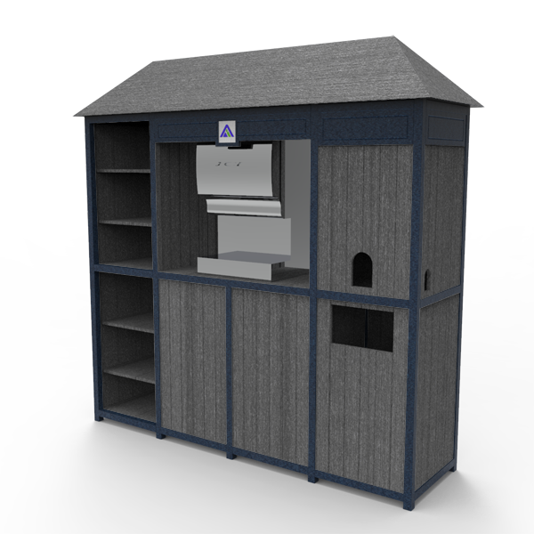 Outdoor beverage stations can make or break your next event. Make sure yours is attractive, appealing, and efficient. Large hospitality station is easy for guests to spot and distinguished by a modern aesthetic highlighted by routed panels. Cap it off by displaying your brand logo on the decorative panel.