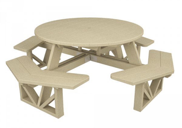 This uniquely designed recycled plastic picnic table features an octagon shaped table top and four individually attached benches.