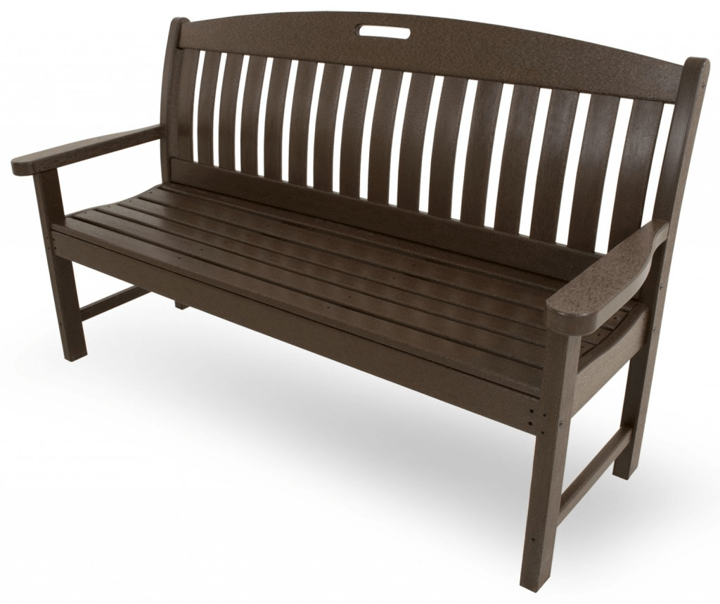 This Eco-friendly bench in a Nautical style features a contoured seat and curved back that provides unexpected comfort from a unique design. Each Nautical style bench is highlighted by a conveniently located hand slot for easy mobility.