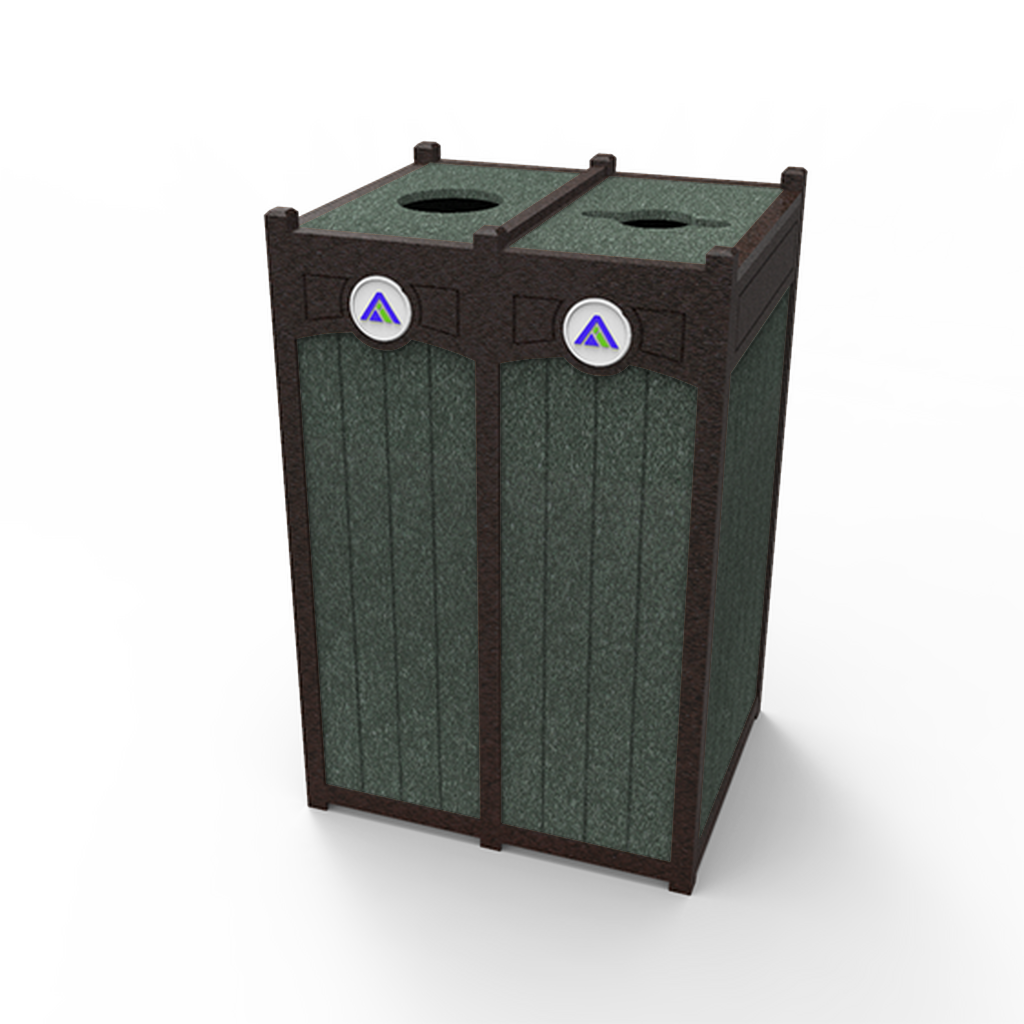 - Using recycled plastic for your waste & recycling receptacles keeps it out of the landfills and put to good use.