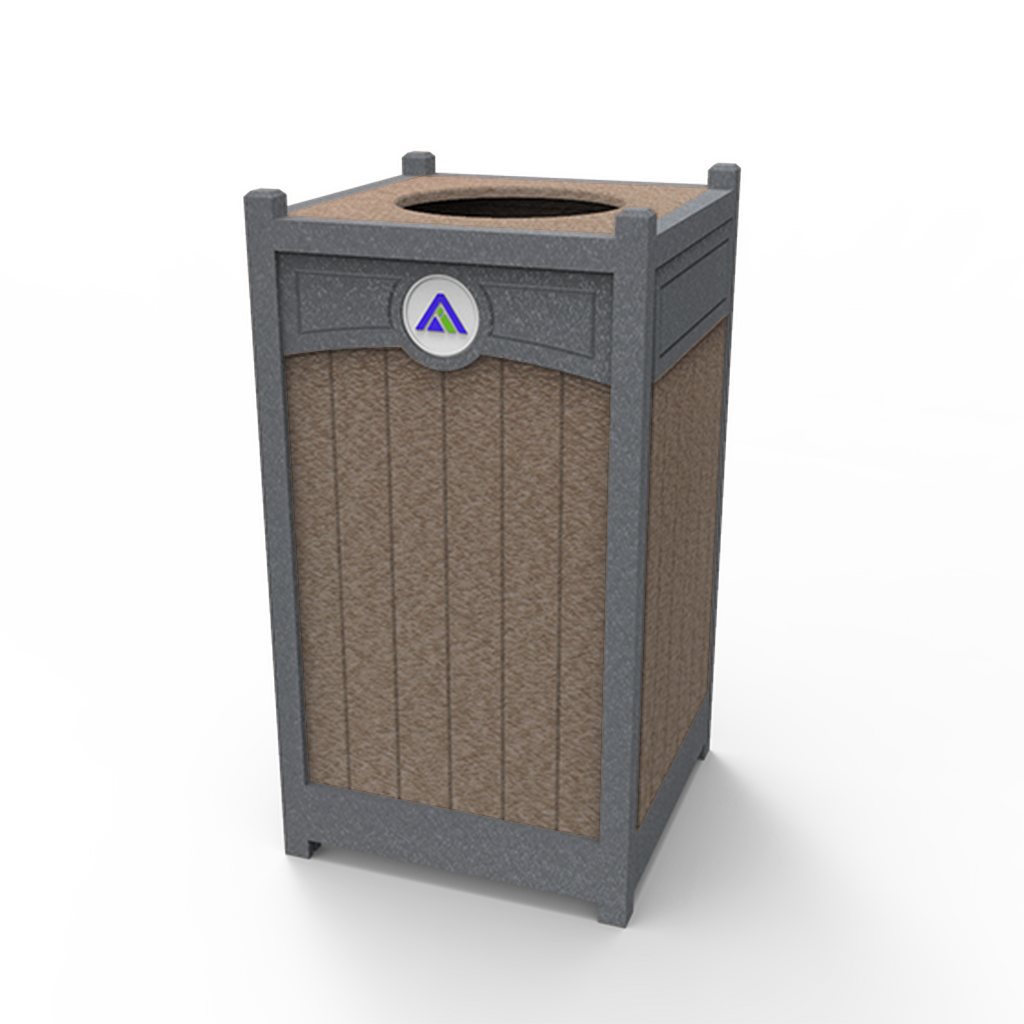 This recycled plastic trash bin from our Signature Series features decorative accent trim panels designed to showcase your logo. Our top loading trash receptacles offer quick and convenient access and can be used indoors or outdoors. Just keep them in covered areas where falling rain, ice, etc. won’t take up residence inside.