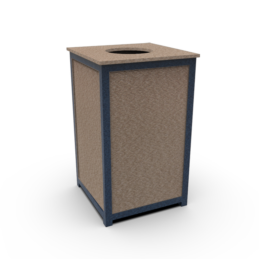 Recycled plastic waste receptacle can be used indoors or out. Contemporary Classic Series with non-routed panels and streamlined, sleek lines. Best used in covered areas away from rain or snow.