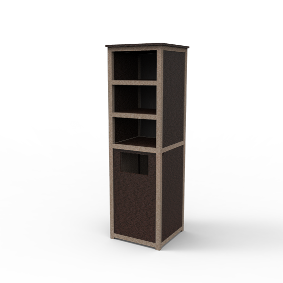 Poolside towel valet provides convenient vertical towel storage space. Recycled plastic construction keeps plastic out of the landfills and on your properties where it can be put to good use. Material resists staining, mold and mildew.