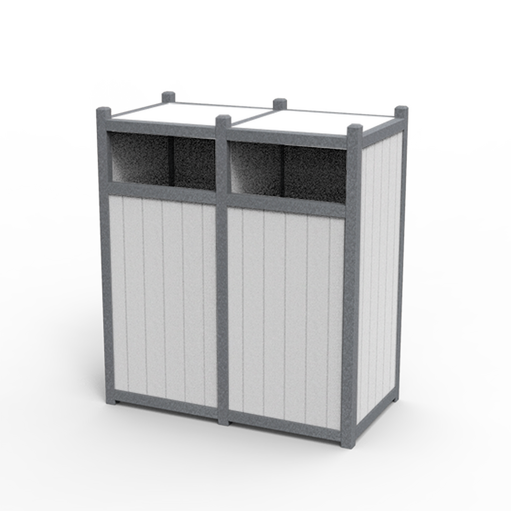 Outdoor recycle bins demonstrate your commitment to the environment. Prominently place these double units in popular areas so users know what to recycle and where. Recycled plastic material suitable for use indoors or outdoors. DuraLumber™ resists rotting, splitting, mold, mildew, rust and insects.