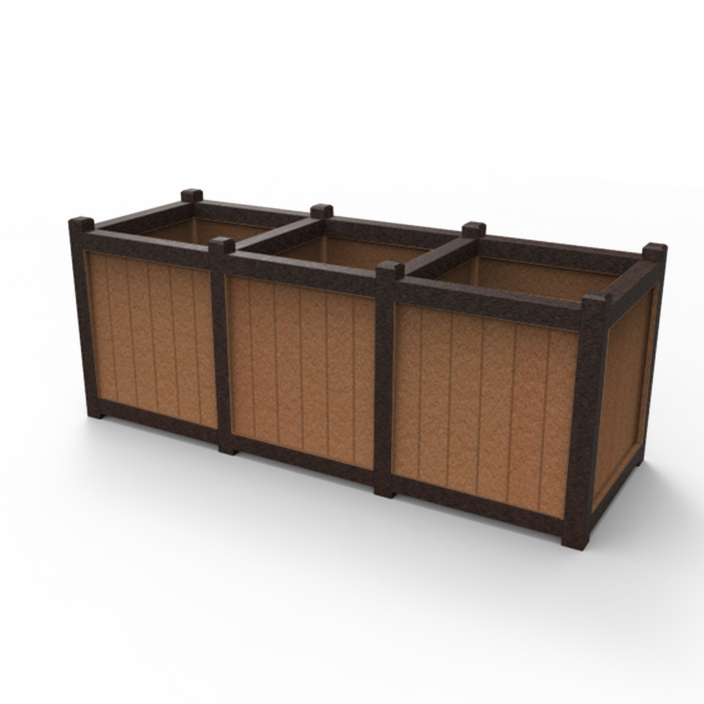 Traditions Series planter boxes include the traditional tongue and groove panel look normally associated with wood, but are made from durable HDPE. Available in single, double or triple planter configurations, Traditions Series planter boxes can accommodate small plantings like flowers or larger plants.