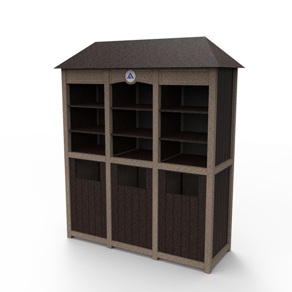 This towel return station features our Signature Series tongue and groove aesthetic. Mold, mildew and stain-resistant recycled plastic can be stored outdoors for convenient towel storage and distribution. Perfect for poolside, tennis clubs, workout facilities or spas. Personalized decorative accent panels included.
